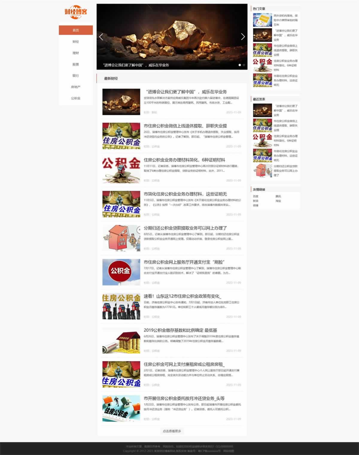 财经博客网站模板