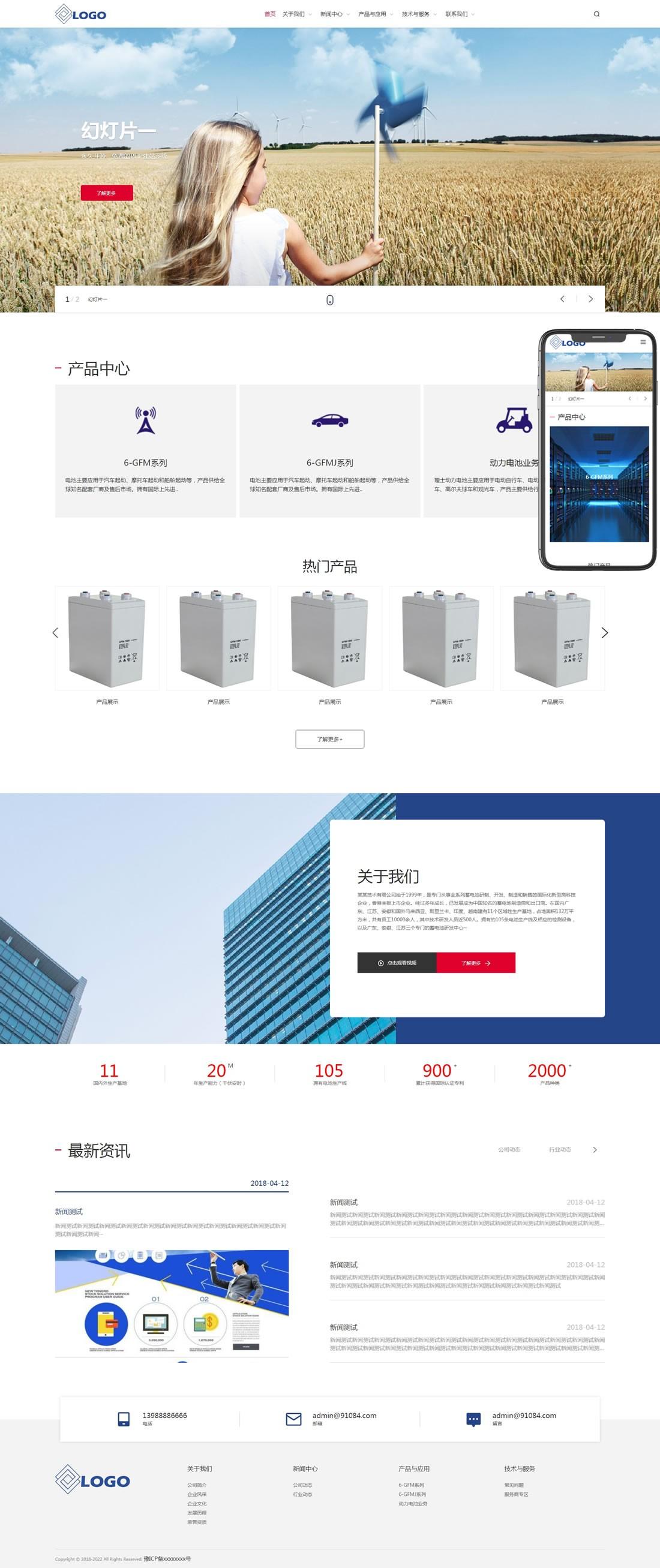 PbootCMS内核开发的网站模板,该模板适用于起停电池、蓄电池等企业,当然其他行业也可以做,只需要把文字图片换成其他行业的即可;