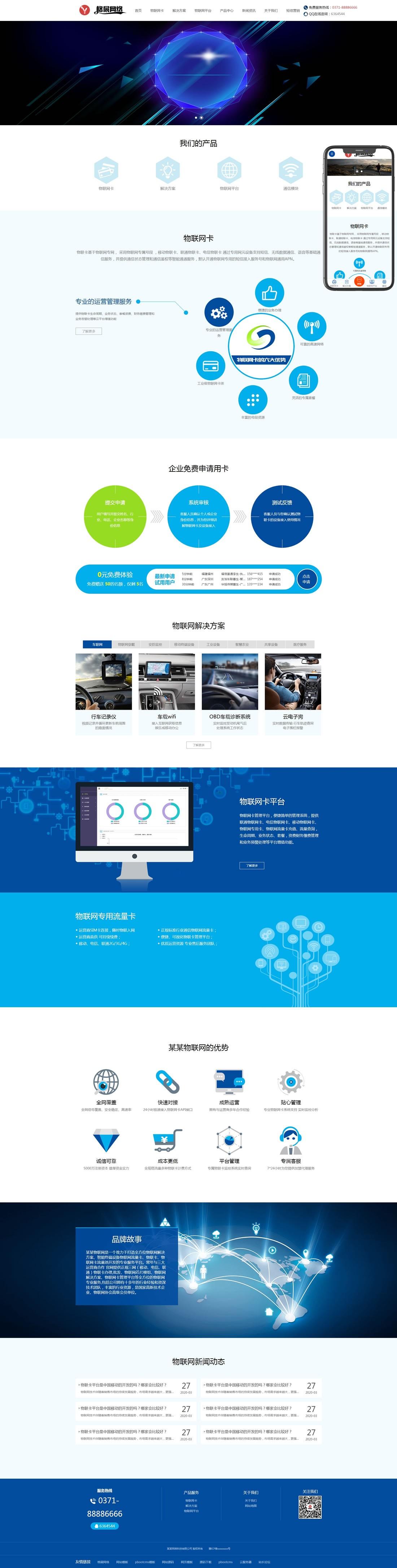 PbootCMS内核开发的网站模板,该模板适用于物联网平台、通信模块等企业,当然其他行业也可以做,只需要把文字图片换成其他行业的即可;