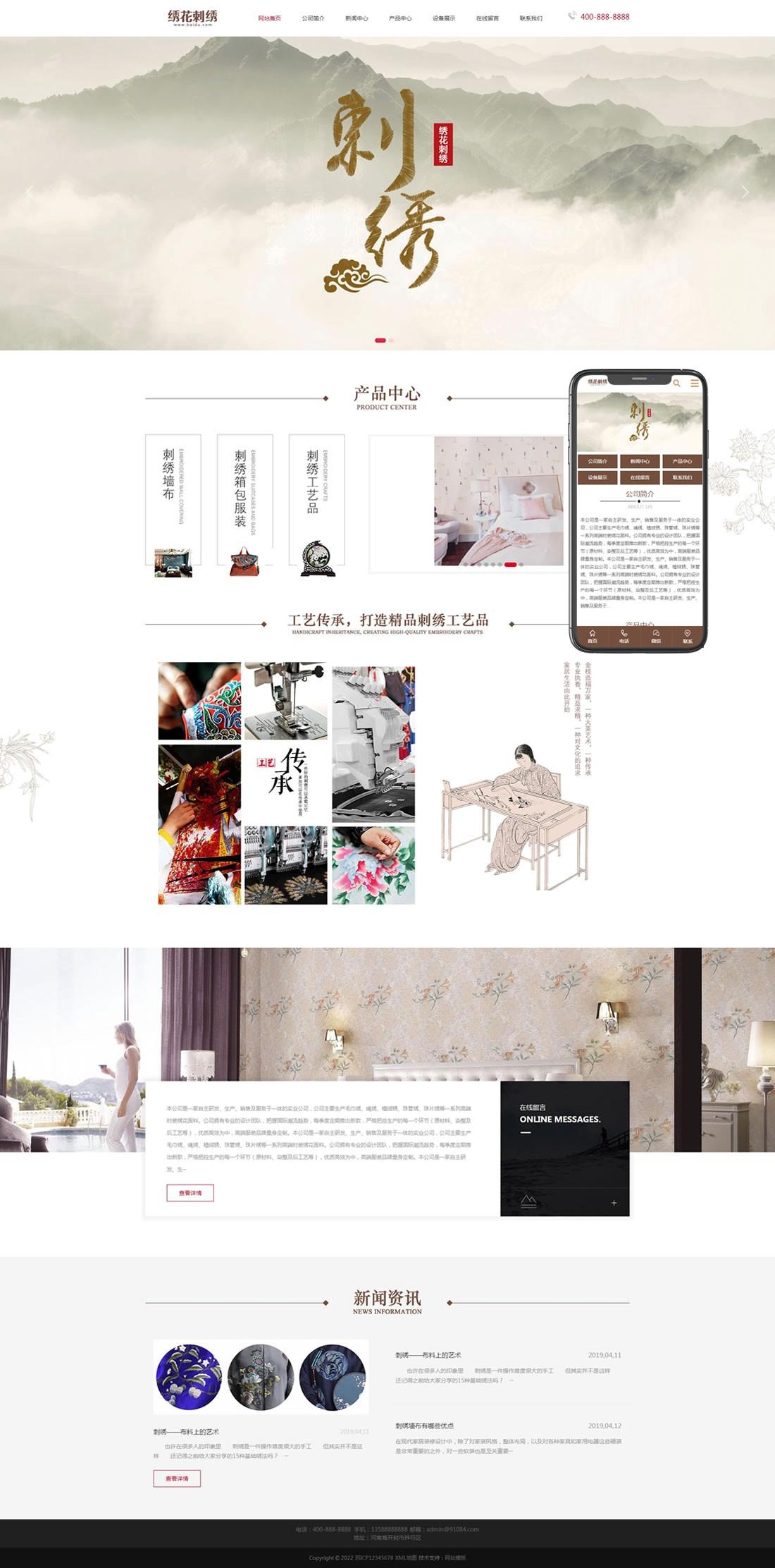 PbootCMS内核开发的网站模板,该模板适用于绣花刺绣、手工工艺等企业,当然其他行业也可以做,只需要把文字图片换成其他行业的即可;