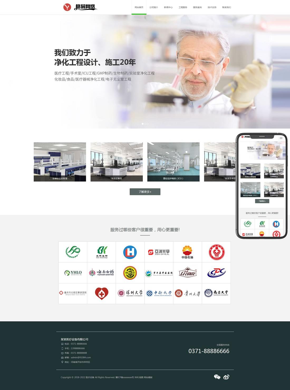 PbootCMS内核开发的网站模板,该模板适用于医疗设备、医疗工程等企业,当然其他行业也可以做,只需要把文字图片换成其他行业的即可;