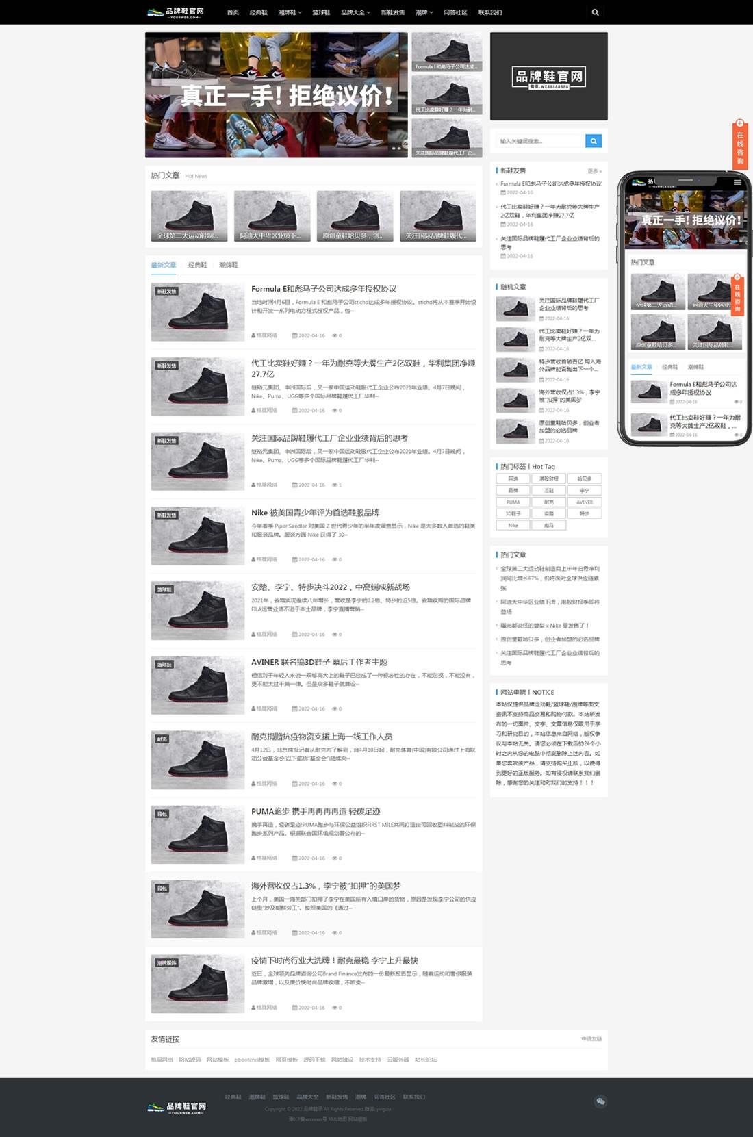 免费cms模板 pbootcms模板 品牌鞋子货源资讯网站模板 https://www.mianfeicms.com/5898.html
