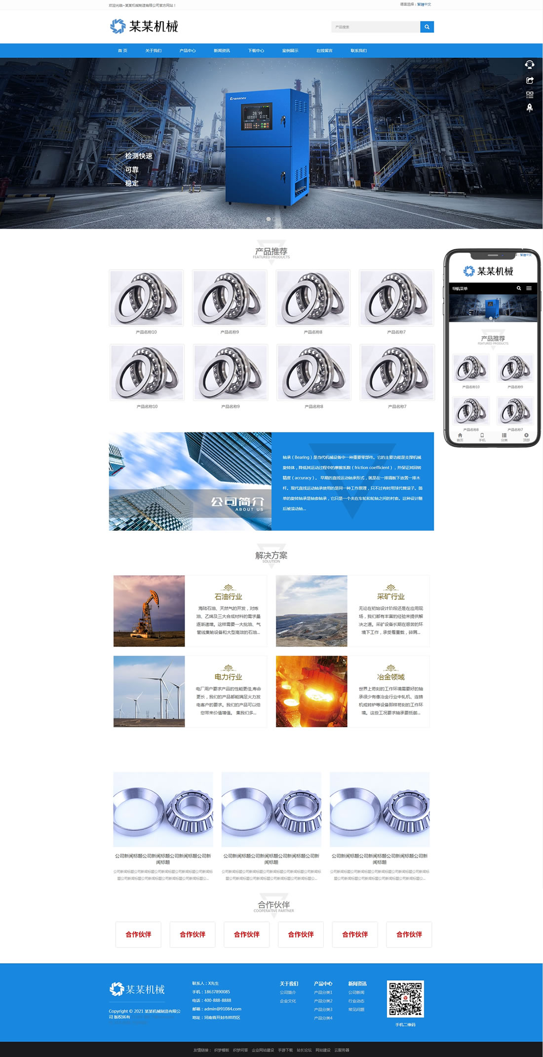 免费cms模板 pbootcms模板 轴承机械设备制造网站模板 https://www.mianfeicms.com/6045.html