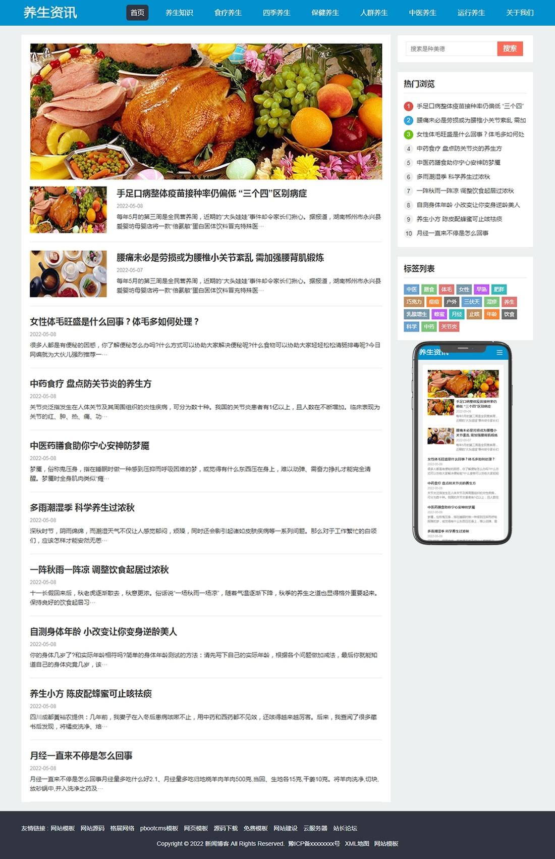 免费cms模板 pbootcms模板 养生资讯文章网站模板 https://www.mianfeicms.com/6051.html