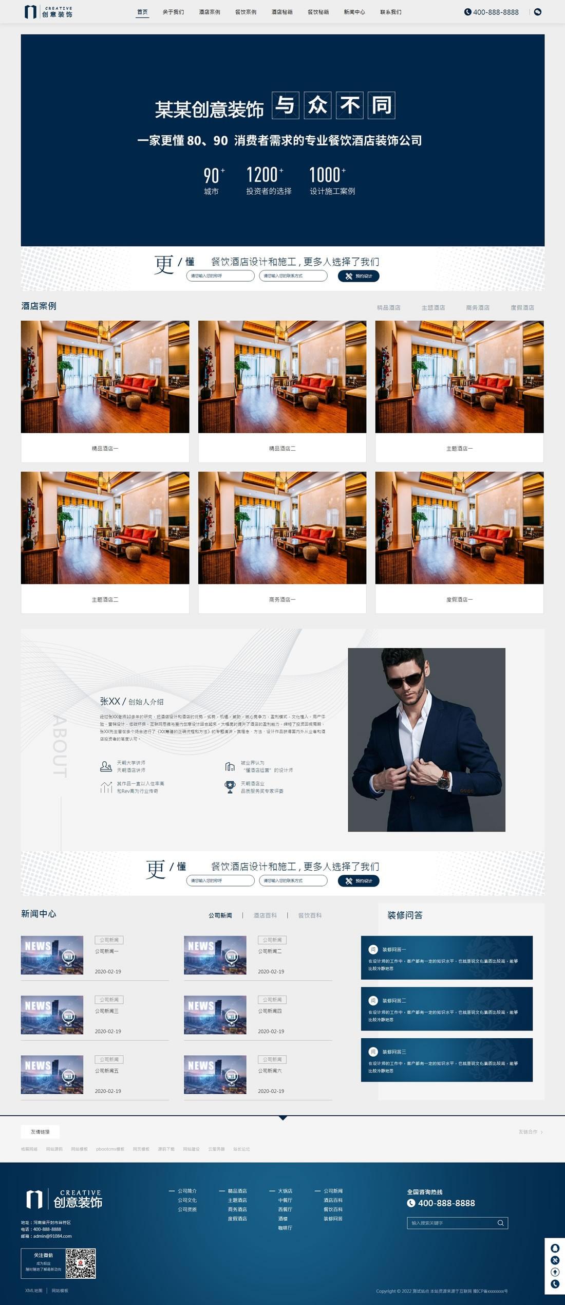 免费cms模板 pbootcms模板 餐饮酒店创意装饰网站模板 https://www.mianfeicms.com/6142.html