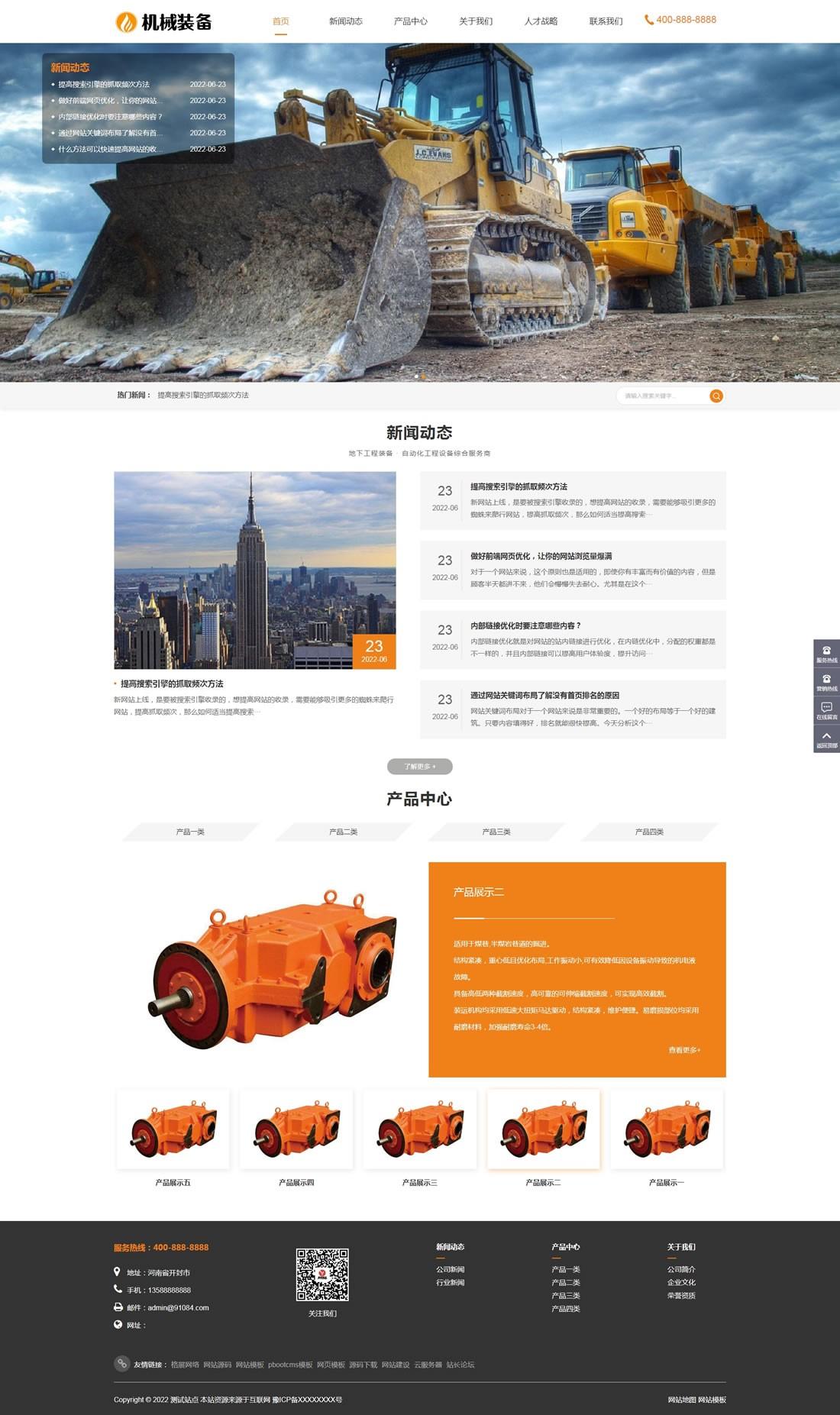 免费cms模板 pbootcms模板 机械重工设备装备制造网站模板 https://www.mianfeicms.com/6312.html