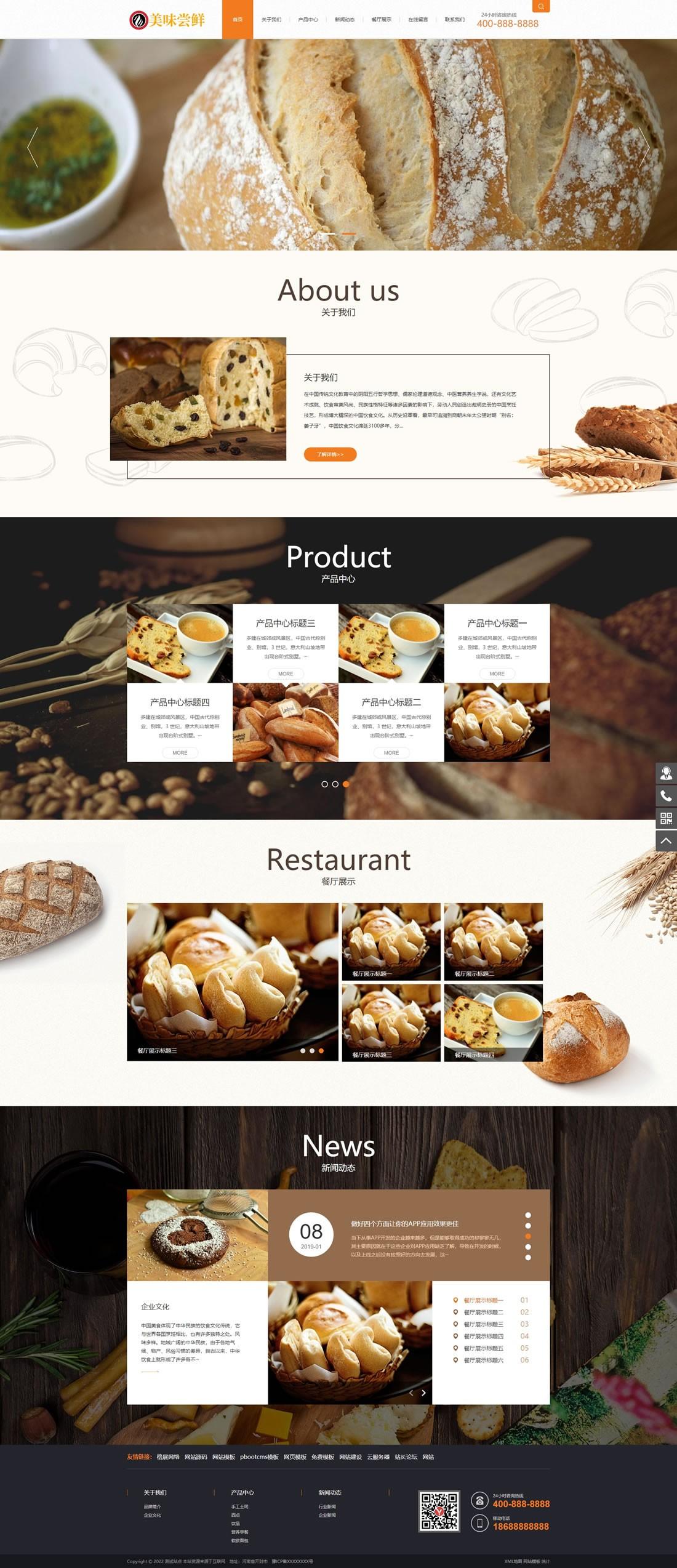 免费cms模板 pbootcms模板 蛋糕面包食品网站模板 https://www.mianfeicms.com/6788.html