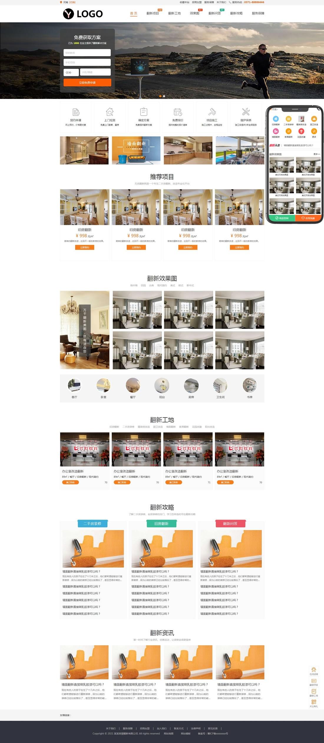 免费cms模板 pbootcms模板 房屋翻新二手房装修网站模板 https://www.mianfeicms.com/7477.html